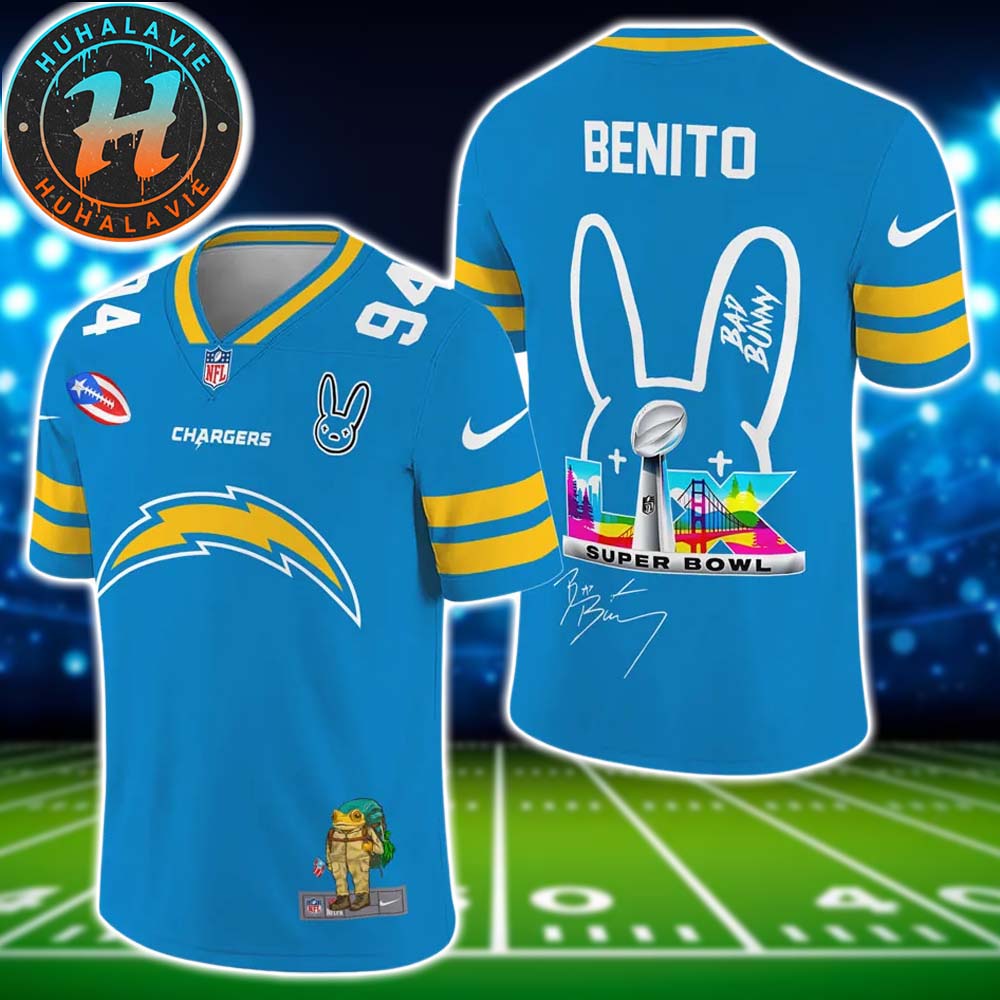 Huhalavie: About NFL Los Angeles Chargers Super Bowl LX x Bad Bunny Benito 94 Gift For Fan Football Jersey